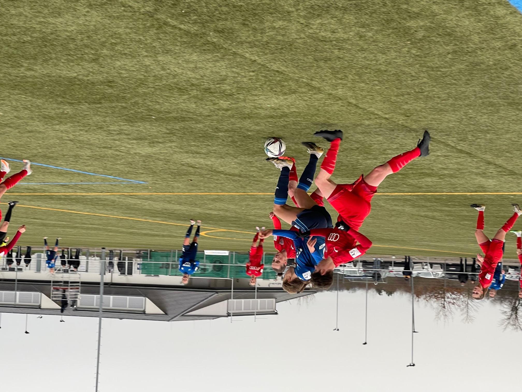 Die Partie wurde kurzfristig auf den Kunstrasen Platz verlegt und somit war klar dass das Wetter ungemütlich sein wird. Mehrfach eintretender Nieselregen und viel Wind umrahmten den vorletzten Spieltag der Hinrunde im Jahr 2021 der 2. Frauen Bundesliga beim Spiel des Tabellen neunten gegen den zehnten.