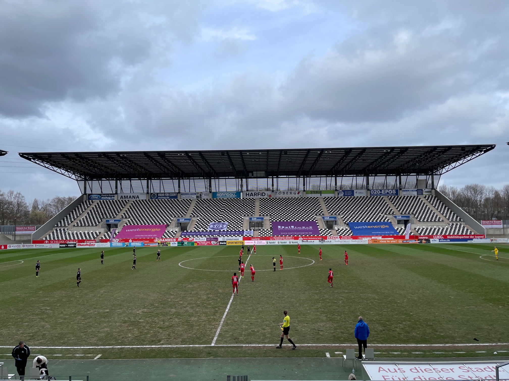 Die Partie begann leider, wie die nicht vorhandene Stimmung auf den Rängen mit einem vorsichtigen Abtasten von beiden Seiten. Insbesondere die Heimmannschaft kamen nach drei Unentschieden in Folge vorsichtig und mit Bedacht, langsam zu ersten Torchancen. Als klarer Favorit gehandelt versuchten sie alles um die Führung zu erzielen was ihnen jedoch in der ersten Halbzeit nicht gelingen sollte. In umkämpften ersten 45 Minuten zeigten aber auch die Gäste aus Pirmasens, warum sie eine weitere Saison in der Regionalliga spielen wollen. Mit einem Leistungsgerechten torlosen Unentschieden sollte es in die Pause gehen.